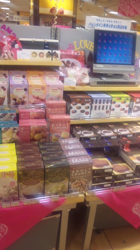こんばんは('-'*)もえです…(゜∇゜)今週の木曜は仕事帰りにレイトショーを見に行く予定で相手が仕事が終わるまで会社近くでうろついてたんですがお店で女の子達が群がっているコーナーがありきゃわいい若い女の子のパワーを貰いに一緒に群がってみたらバレンタインデーコーナーでした(笑)ちょいテンションあがりました(笑)『うわっ、これ食べたい♪』とか自分が食べたいもんばっかり(笑)まぁ渡す相手がいないんでしょうがない(笑)( ̄∀ ̄)へっ。